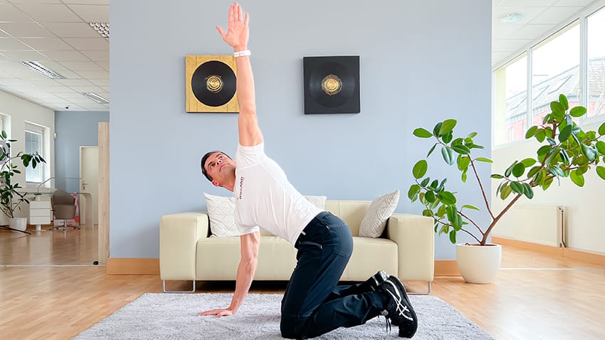 Mobilization helps the muscles surrounding our joints to become more flexible. Rapid mobilization exercises are especially effective when warming up before physical activity: ideally for a period of 15 to 20 minutes. These can also be done as a “cool-down” after sport. When mobilization exercises are slowly performed after physical activity, this “cool-down” helps the metabolism to eliminate toxins.